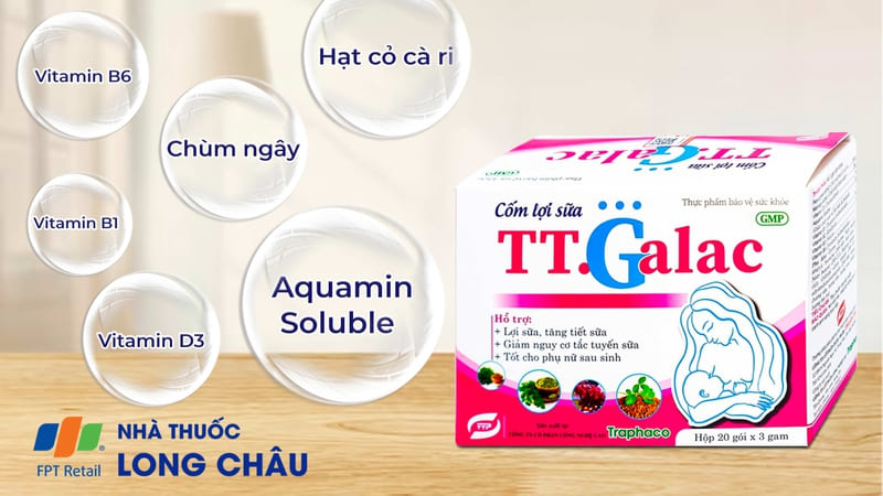 Cốm lợi sữa TT.Galac cung cấp các chất dinh dưỡng hỗ trợ tạo sữa và tăng chất lượng nguồn sữa mẹ. Sản phẩm cũng phù hợp để cải thiện sức khỏe phụ nữ sau sinh, giúp mẹ vững vàng hơn để nuôi con thật khỏe.