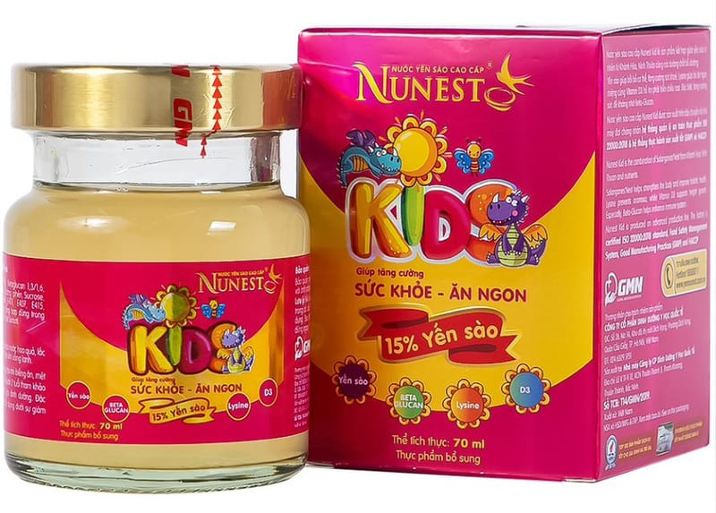 Nước yến sào cao cấp cho trẻ em Nunest Kid không những chứa tổ yến tự nhiên mà còn giúp trẻ bổ sung thêm beta glucan, lysine và vitamin D3. Trẻ được bồi bổ, ăn ngon và tăng cường sức khỏe để chống lại bệnh tật.