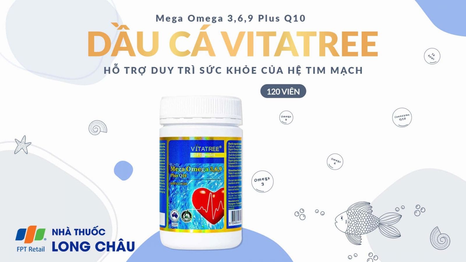 Vitatree Mega Omega 3,6,9 Plus Q10 mang đến công thức tối ưu hỗ trợ sức khỏe tim mạch nhờ thành phần omega 3 (dầu cá), omega 6 9 (dầu lanh), dầu hoa anh thảo và coenzyme Q10. Trong đó, omega 3-6-9 là các axit béo thiết yếu, mà cơ thể không tự tổng hợp được, phải bổ sung từ bên ngoài. Các nghiên cứu cho thấy omega 3-6-9 giúp làm giảm các nguy cơ mắc bệnh tim mạch, hỗ trợ điều hòa nhịp tim, giúp hạn chế nguy cơ xơ vữa động mạch, hỗ trợ tuần hoàn máu tốt hơn.