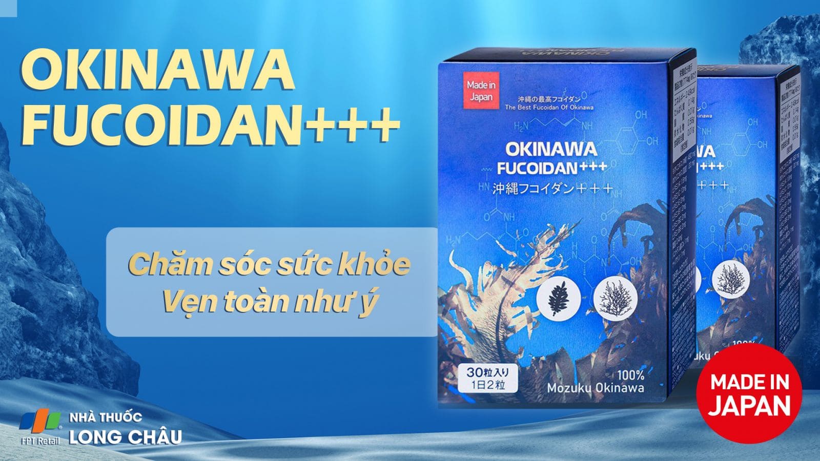 Okinawa Fucoidan +++ được nhập khẩu chính thức bởi JpanWell. Với thông điệp 'Made in Japan', JpanWell mong muốn tạo sự uy tín và niềm tin chất lượng trong lòng khách hàng. Cam kết cung ứng cho thị trường Việt Nam dòng sản phẩm được chọn lọc rất kỹ lưỡng và sản xuất tại Nhật Bản. Các sản phẩm của JpanWell đều được Bộ Y tế Việt Nam kiểm định chất lượng, cấp giấy chứng nhận được phép nhập khẩu và phân phối.